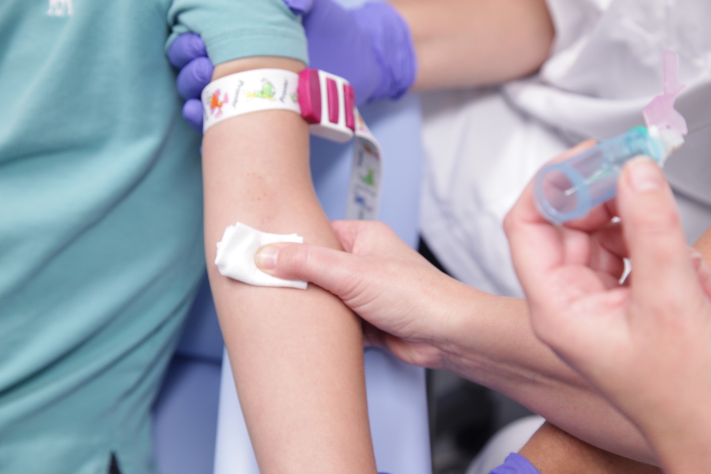 Miejsce, z którego pobrana zostanie próbka krwi, zostaje dokładnie oczyszczone.