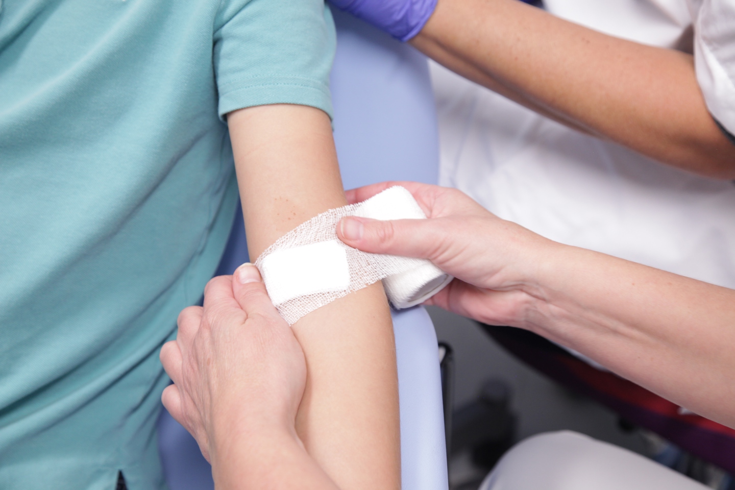 L’endroit de la prise de sang est bien nettoyé.