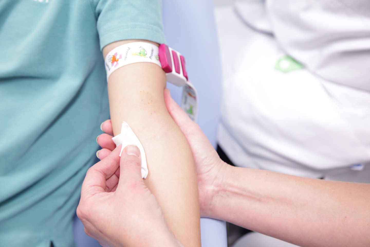 De plek van de bloedafname wordt goed schoongemaakt.