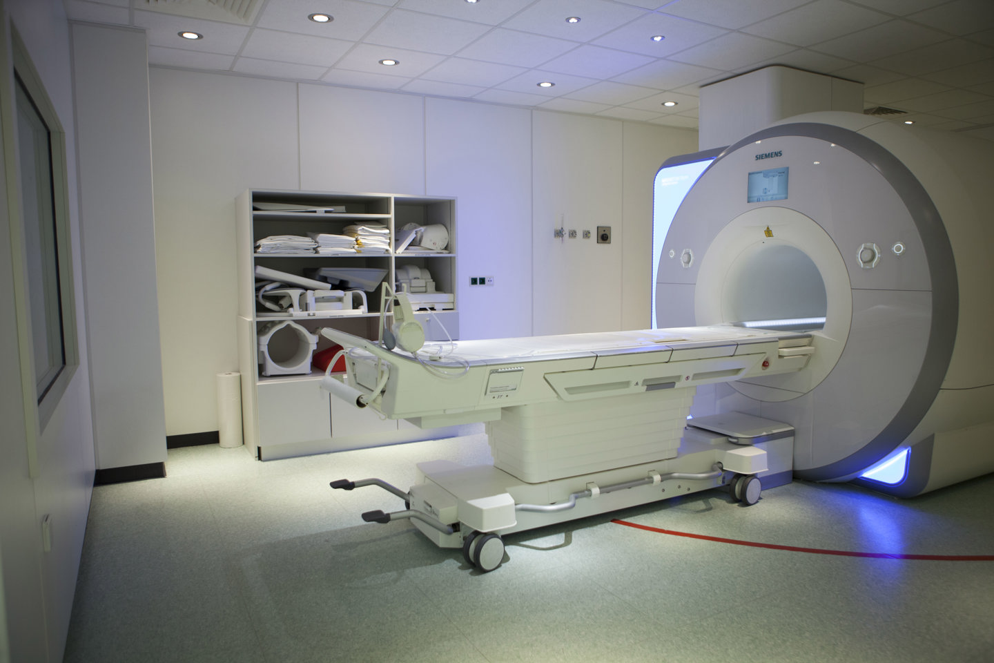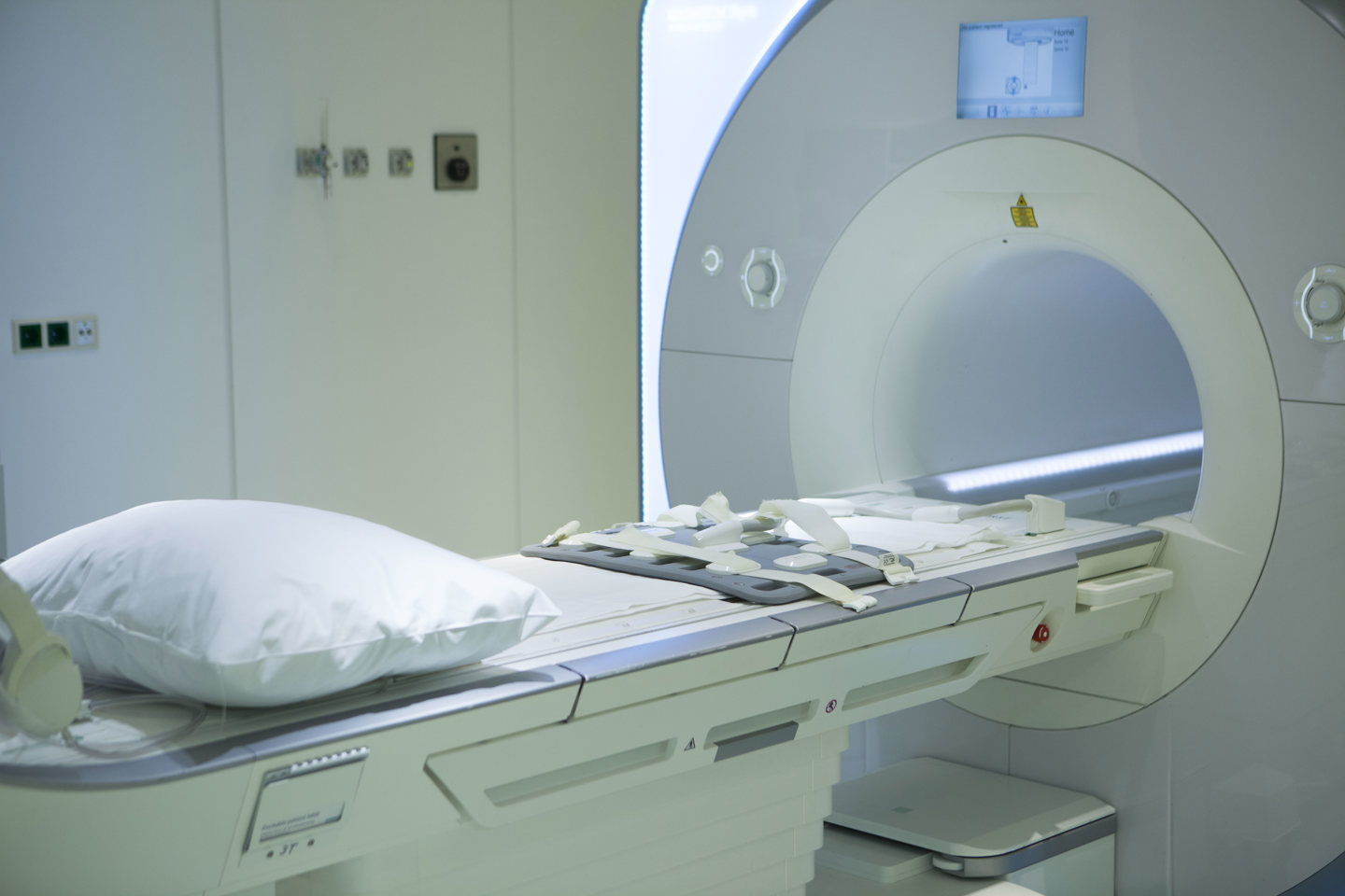 Zo ziet het scanapparaat eruit. Het lijkt op een tunnel en is aan twee kanten open. Het bed kan omhoog en omlaag en in en uit het scanapparaat worden geschoven.