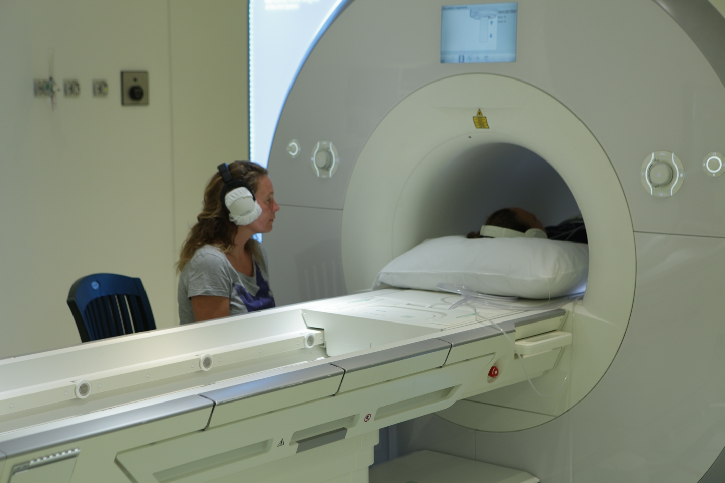 Het scanapparaat maakt een hard, bonkend geluid. Daarom krijg je een koptelefoon op, zodat je tijdens het onderzoek naar muziek of een verhaaltje kunt luisteren.