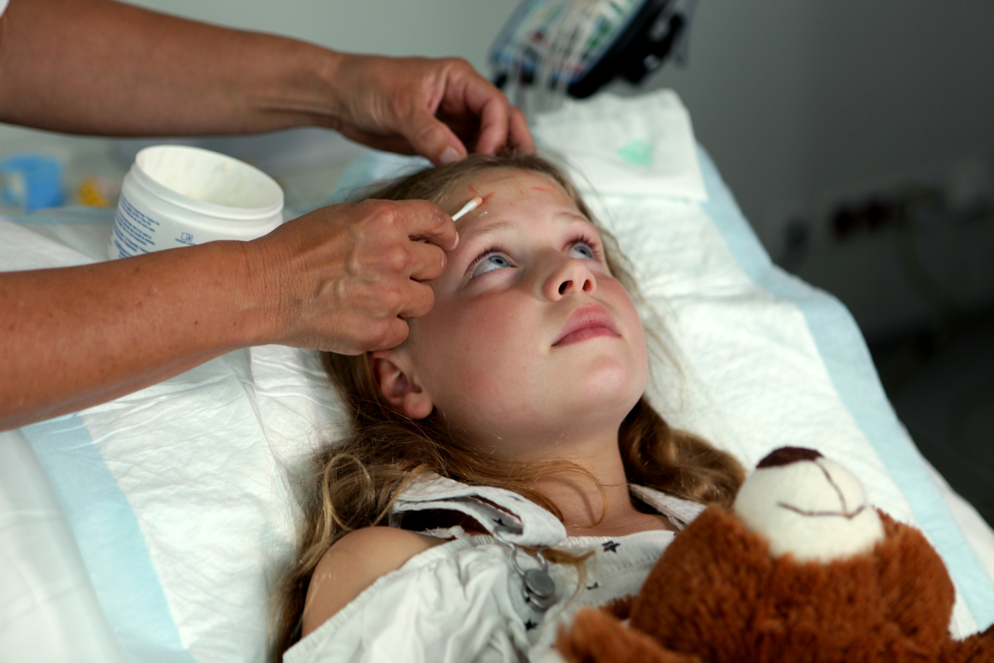 Pendant l’examen, il est important que tu restes immobile. De temps en temps, on te demande de fermer les yeux. La personne qui est avec toi peut te lire une histoire.