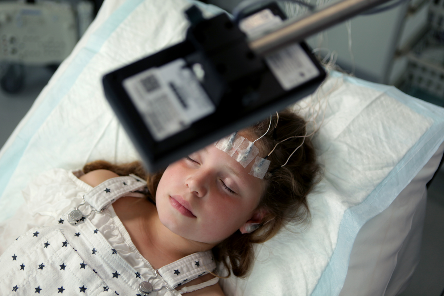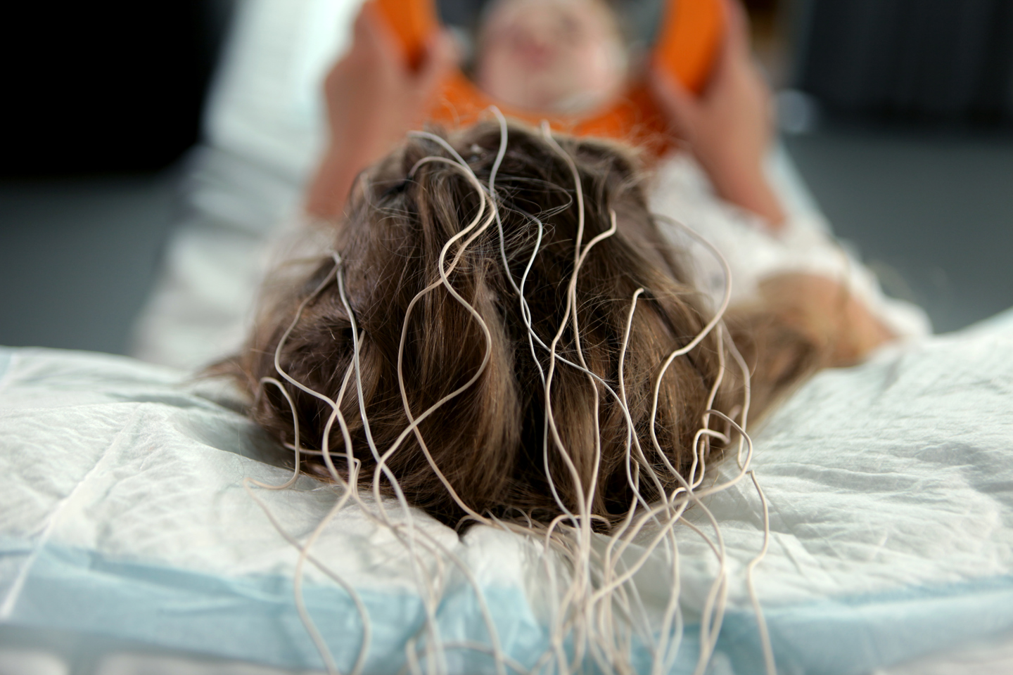 Lorsque tous les embouts avec les fils sont bien fixés sur ta tête, l’examen peut commencer.