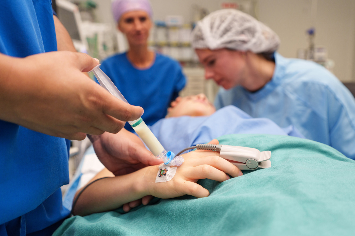 Via het infuus krijg je eerst een medicijn waar je rustig van wordt. Dit ziet eruit als water en is nog niet de narcose. Soms krijg je een draaierig gevoel in je hoofd en een kriebel in je keel. Daarna komt het slaapmedicijn voor de narcose. De kleur hiervan is wit.