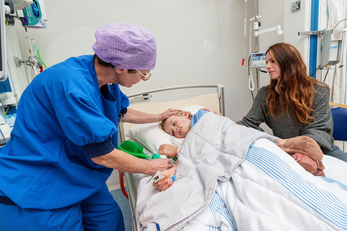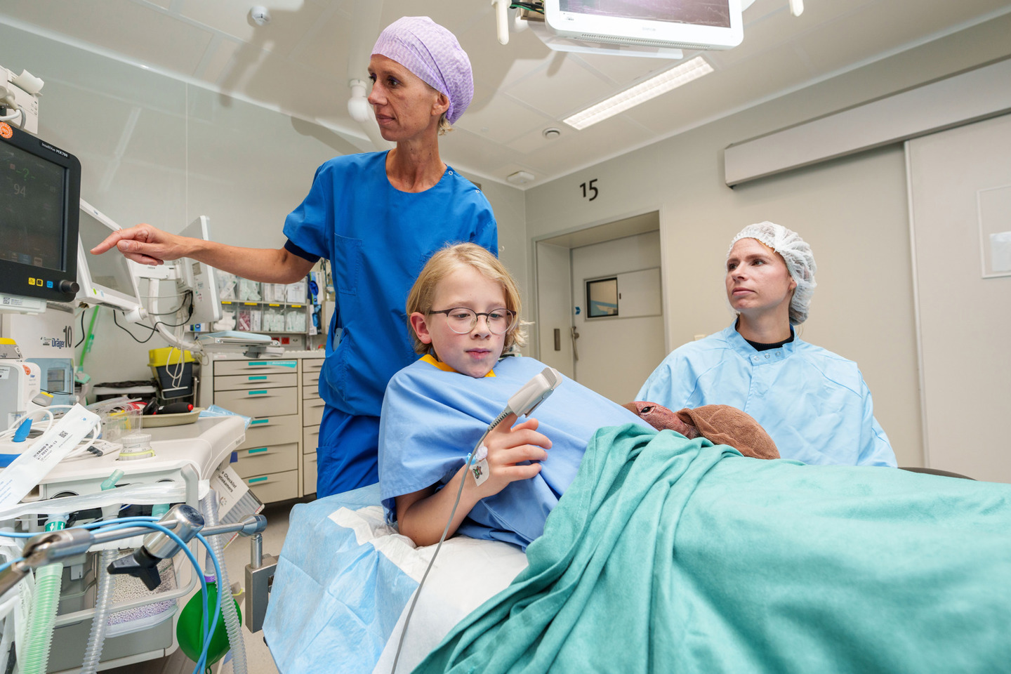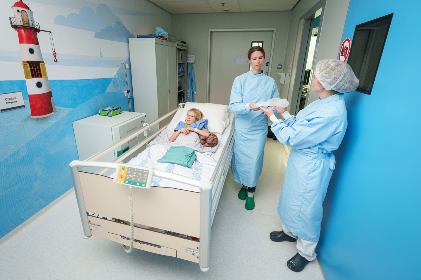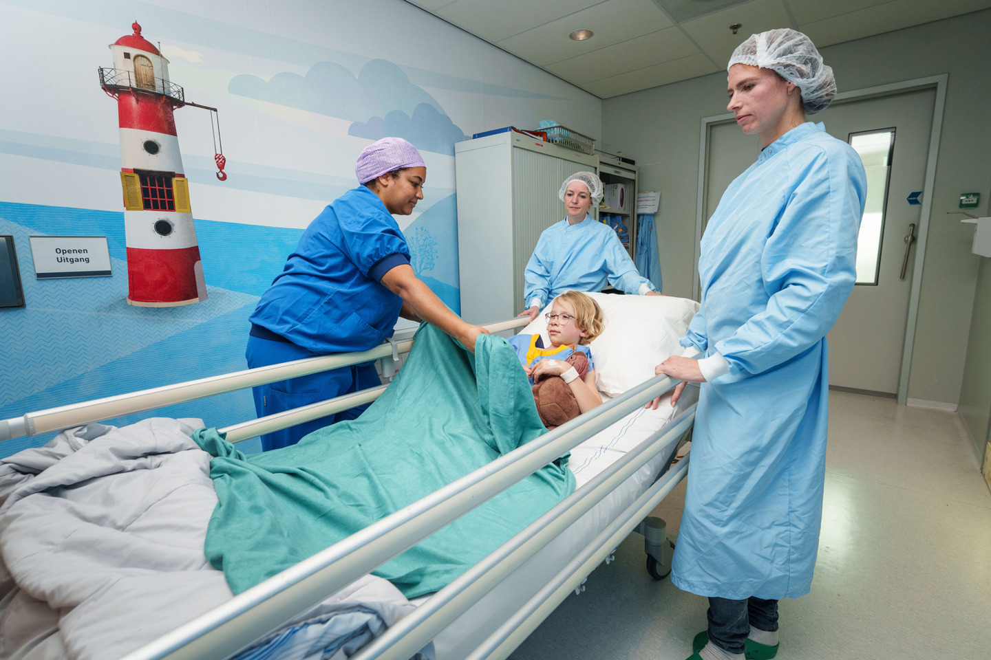 Als je aan de beurt bent, brengt de verpleegkundige je naar de operatieafdeling. Je begeleider mag met je mee.