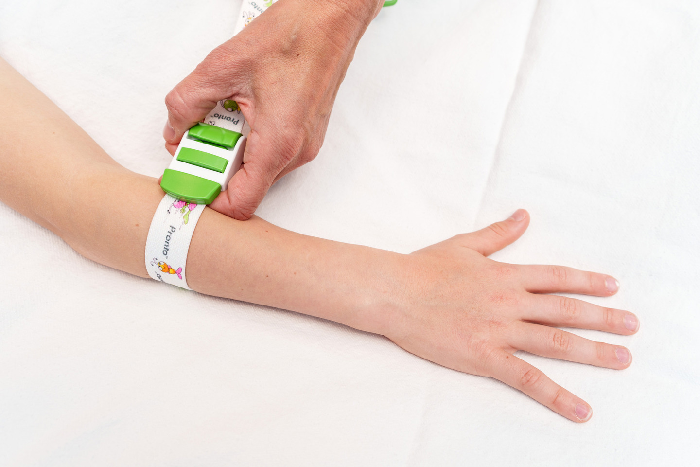 Je krijgt een strakke band om je arm. Soms is het nodig om even op je hand te kloppen. Of vragen we je om een vuist te maken met je hand.