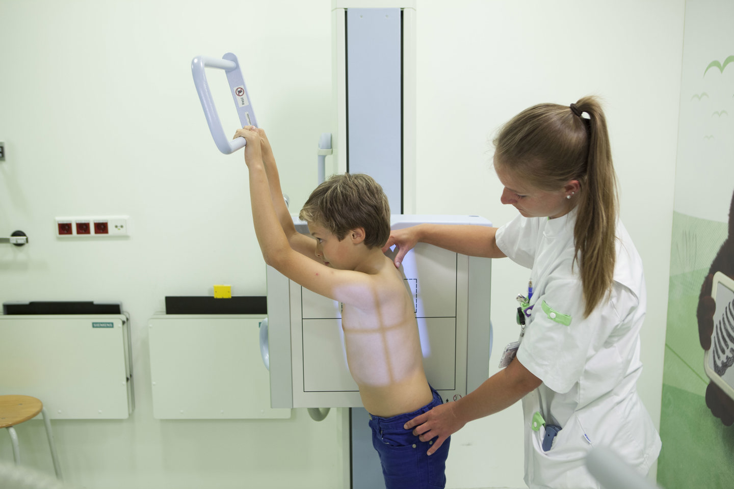 Bij dit onderzoek worden er foto’s van je bovenlijf gemaakt. Dit zijn geen gewone foto’s, maar zogenaamde röntgenfoto’s. Op deze foto’s ziet de dokter hoe de binnenkant van je lijf eruit ziet. De verpleegkundige die de foto’s maakt, noem je de laborante.